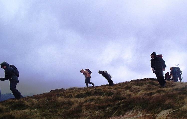 Some intrepid hikers braving the stormy weather near Lough Altan, Co. Donegal, during the October Bank Holiday weekend