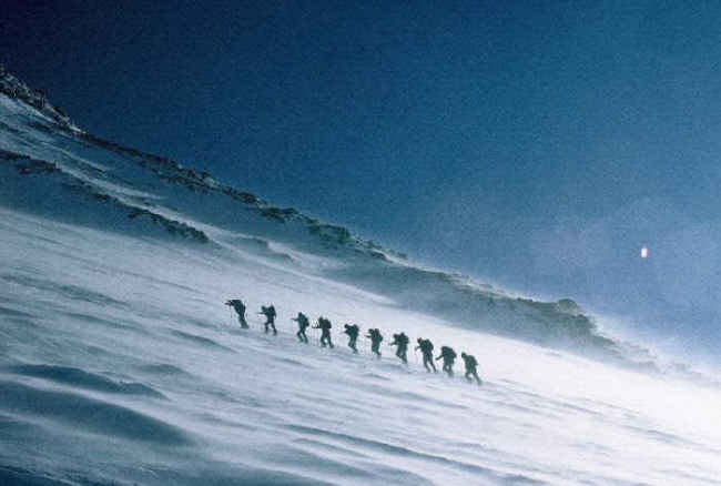 Reaching New Heights: Group ascending snowfield on Elbrus