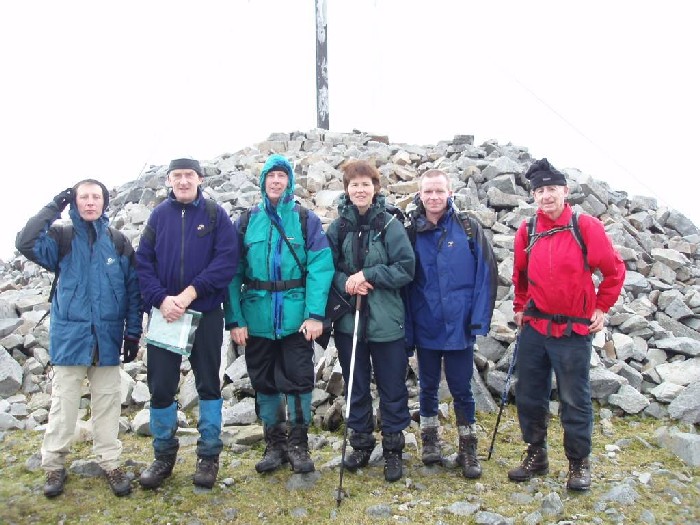 Philip, Garry, Frank, Alma, Stephen and Pearse on top of Muckish Mountain, Co. Donegal
