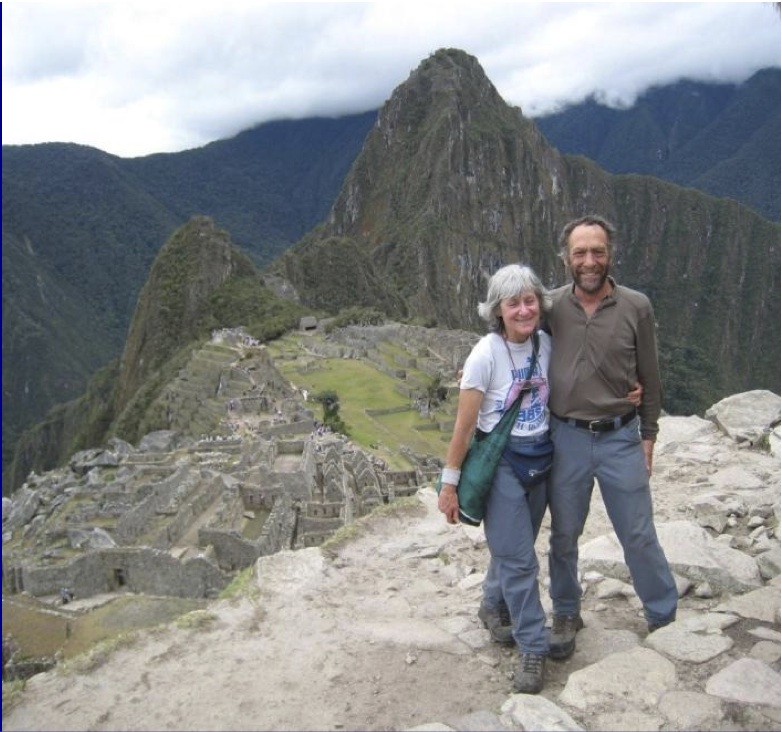 Bill & Dot Fine in front of the famous Peruvian landmark, Machu Picchu, the highlight and end point of the Inca Trail.